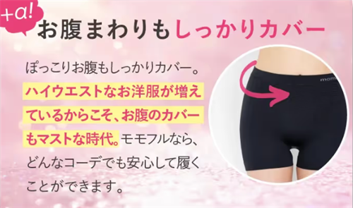 日本製の高品質な素材と特許技術を駆使したモモフルプラスで、美しいヒップラインとウエストを手に入れましょう。
