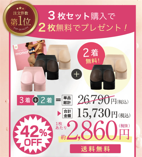 よりお得にモモフルプラスを手に入れたい方には、3着セットの購入がおすすめです。